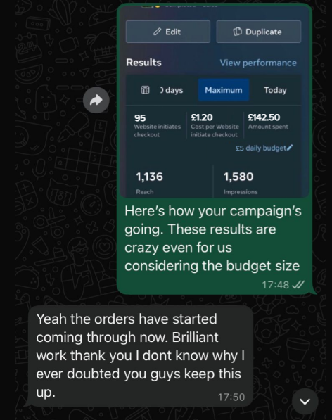 While this isn’t an ordinary result, any agency who tells you that spending less than £20/day on ads isn’t worth it, is lying, or isn’t great at running ads